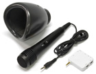 マイクとミュートカップが1個づつ付属。一人でカラオケ練習する方にオススメの基本セットです。カラオケユニットにバッテリーが内蔵された新バージョン。 |