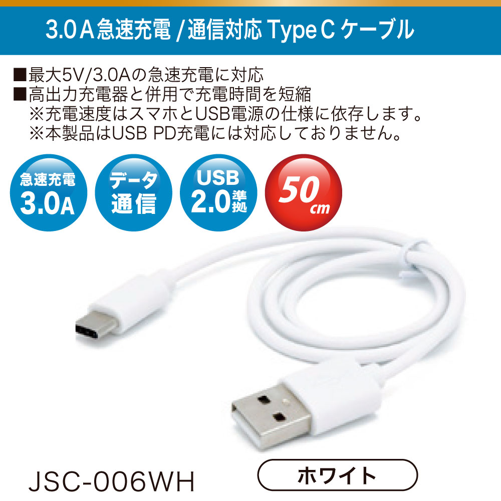 製品名 3.0A急速充電 /通信対応 TypeCケーブル ホワイト