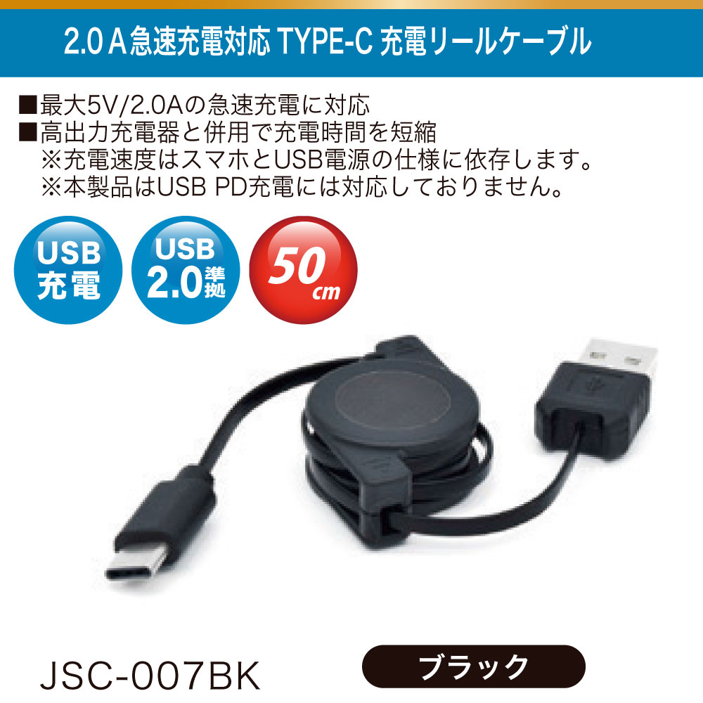 製品名 2.0 A急速充電対応 TYPE-C 充電リールケーブル ブラック