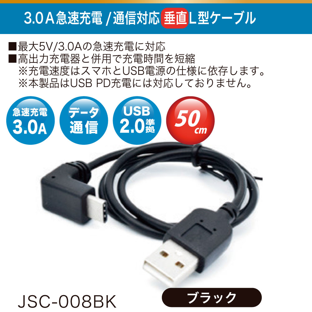 製品名 3.0A急速充電 /通信対応 垂直 L型ケーブル ブラック