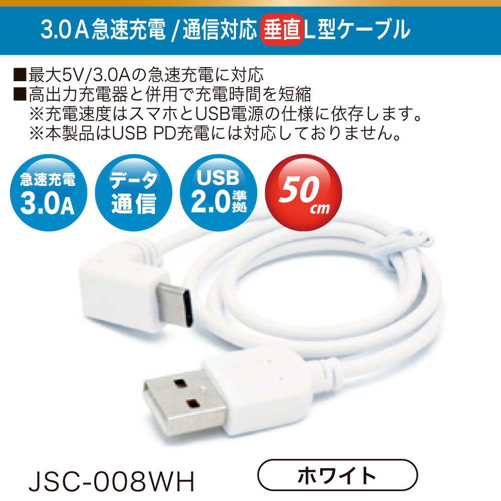 製品名 3.0A急速充電 /通信対応 垂直 L型ケーブル ホワイト