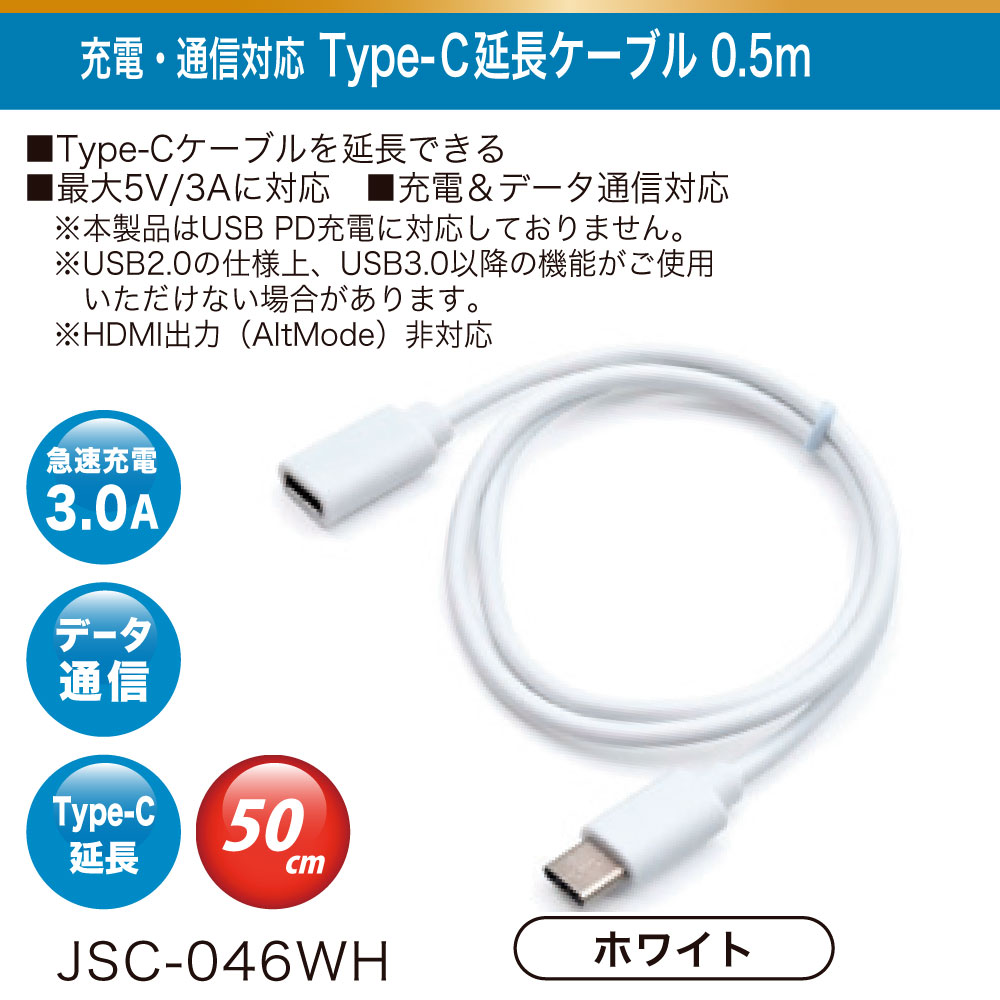 製品名 充電・通信対応 Type-C延長ケーブル 0.5m ホワイト