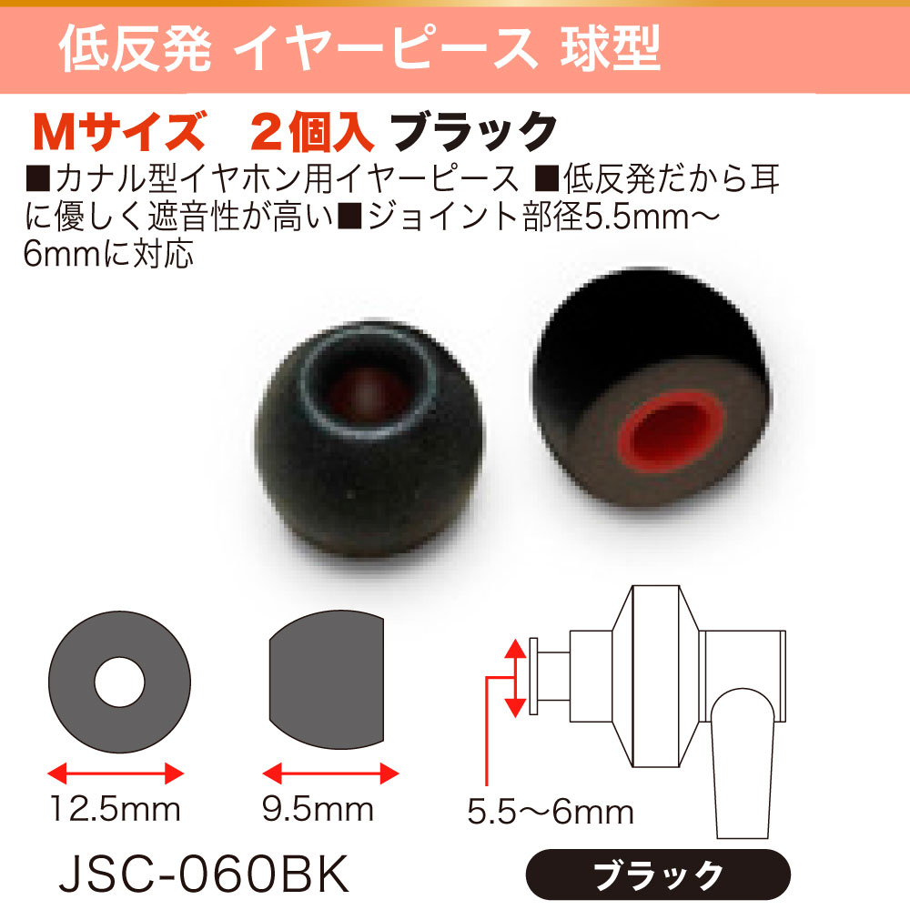 製品名 低反発 イヤーピース 球型 Mサイズ 2個入 ブラック