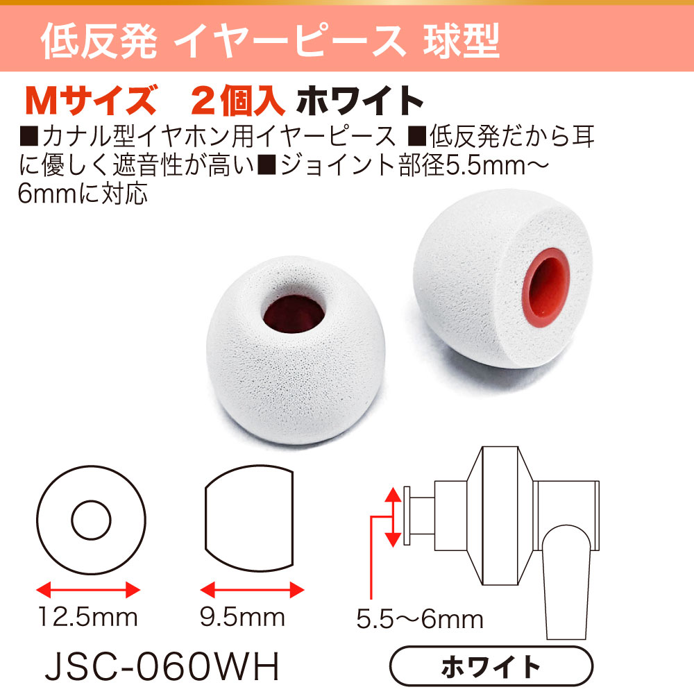 製品名 低反発 イヤーピース 球型 Mサイズ 2個入 ホワイト