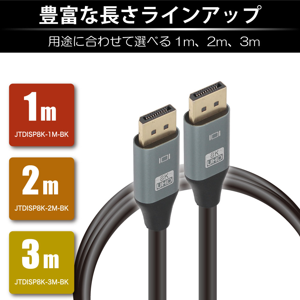 DisplayPortを搭載したPCとディスプレイを高画質で接続したい方に最適なDisplayPortケーブル。