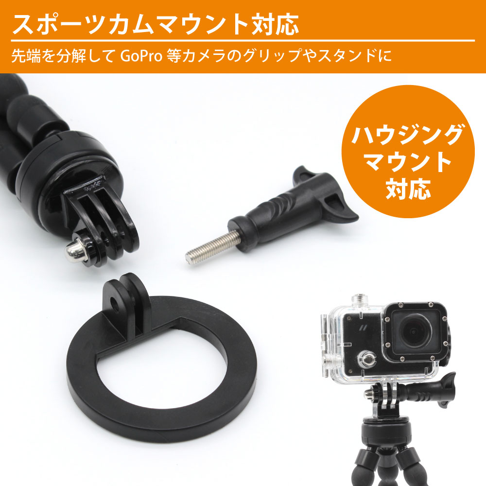 先端のリングマグネット部を取り外せば、GoPro等に採用されているハウジングマウントの取付にも対応。