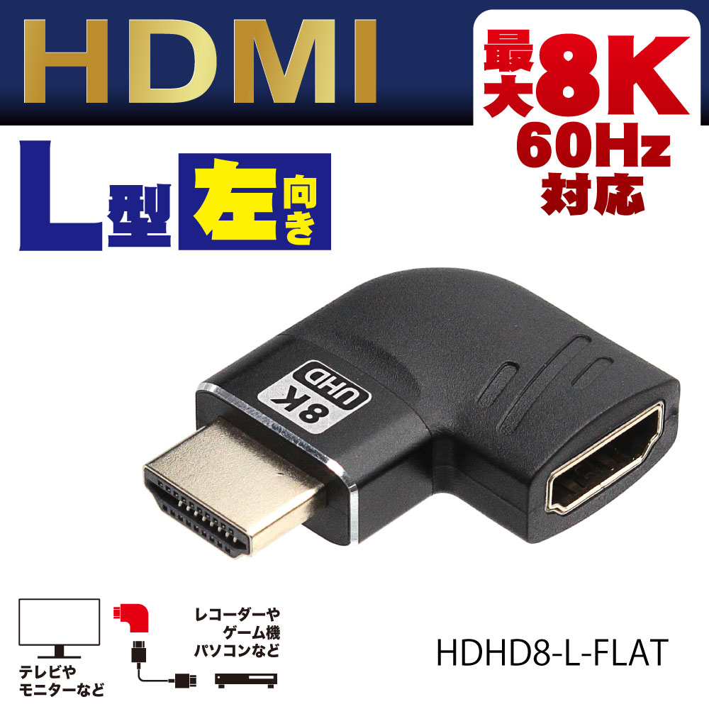 HDMIコネクターの向きを左向きに変換、薄型テレビやモニターの背面など縦にHDMIの並ぶ機器でも便利なL型フラット変換コネクターです。