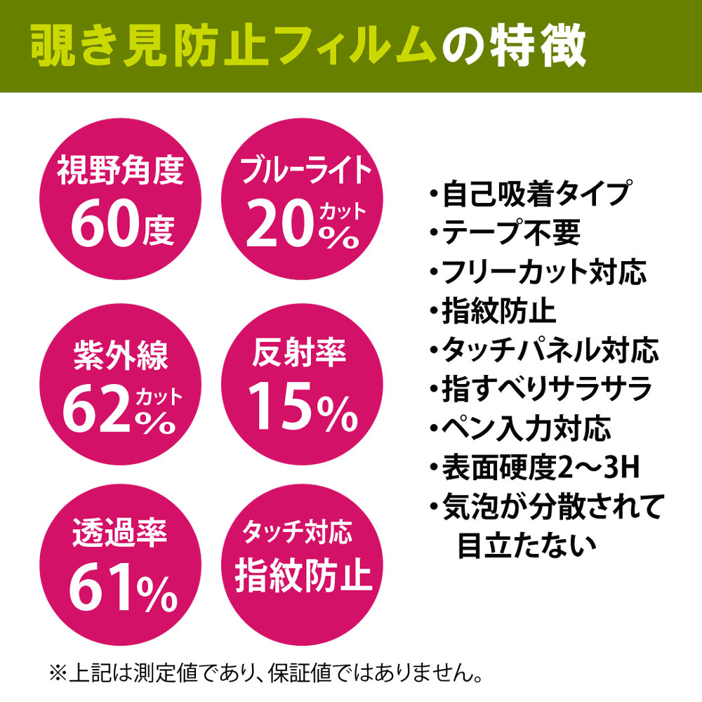 視野角60度(左右各30度)の範囲外からは画面表示が視認できず黒く見える、プライバシー保護 & 液晶画面保護フィルム