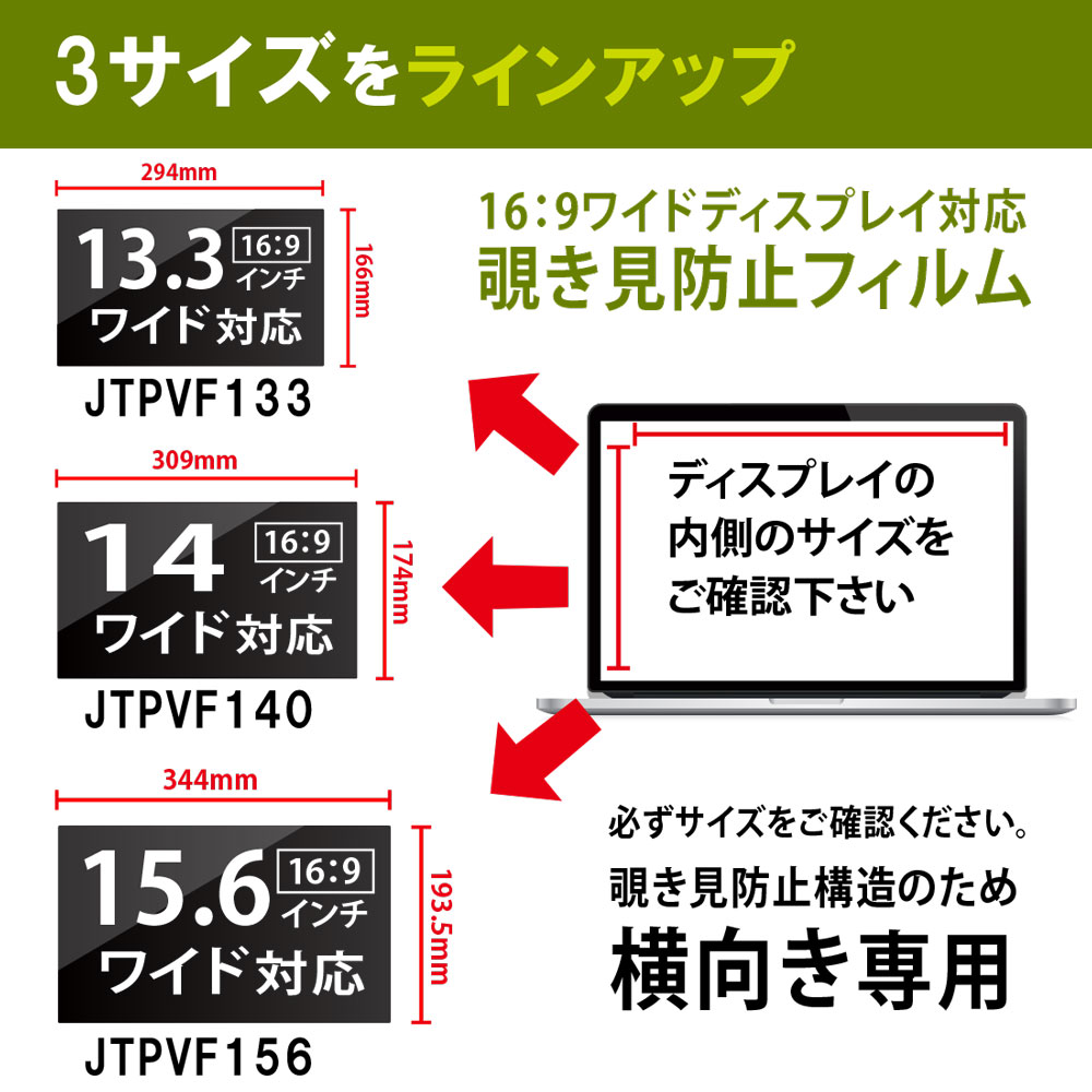 | 型 番 | 13.3インチワイド : JTPVF133 14.0インチワイド : JTPVF140 15.6インチワイド : JTPVF156 |