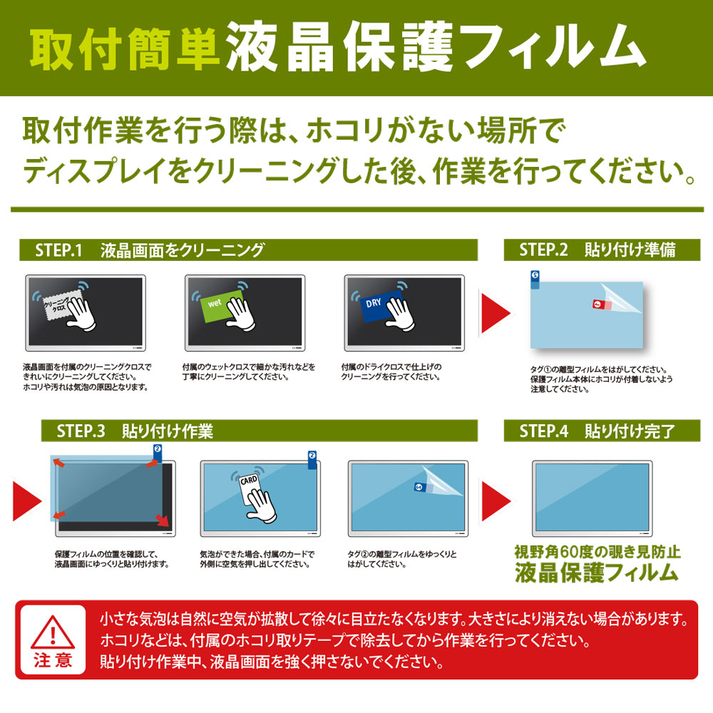 | フィルムサイズ | 13.3インチ : 294×166mm 14.0インチ : 309×174mm 15.6インチ : 344×193.5mm |