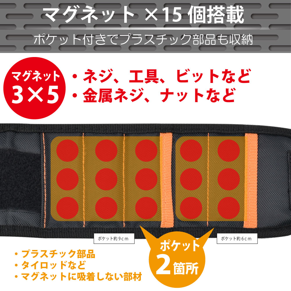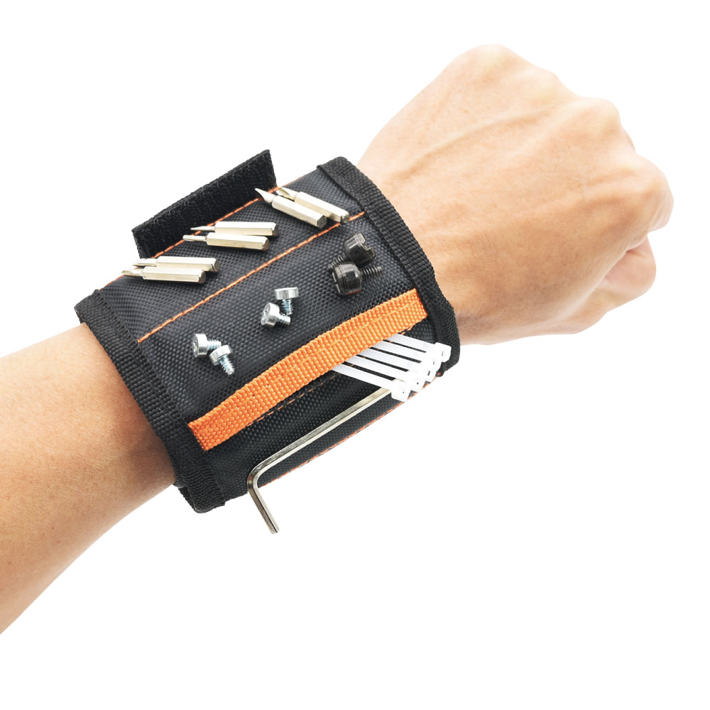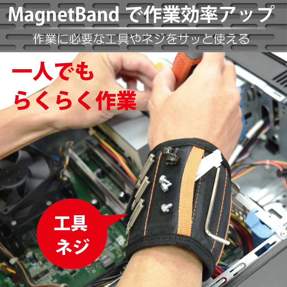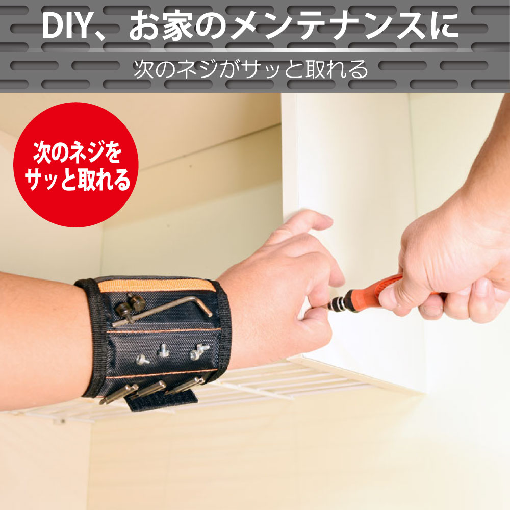 マグネットを搭載したリストバンドでネジや工具を吸着。