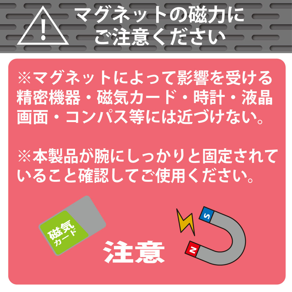 リストバンド部分には、3×5列のマグネットを15個配置しており、