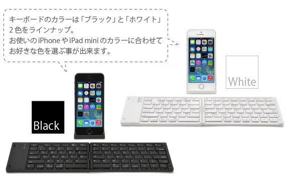 iPhone&iPad mini/mini Retinaでパソコンの様に文字を入力する事が出来る、薄型&軽量ポータブルタイプのBluetooth 接続ワイヤレスキーボード。「シルバー&ホワイト」「シルバー」にピッタリのホワイトカラーです。 |