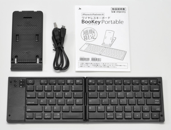 「iPhone&iPad mini 用 キーボード Bookey Portable ブラック」に、USB AC充電器が1個付いてくるお得なセットです。近くにパソコンが無くても内蔵バッテリーを充電する事が出来るようになります。