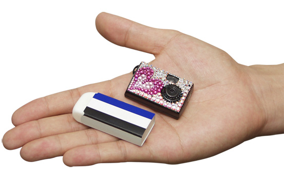 | 「CHOBi CAM」は、消しゴムとほぼ同じサイズのとっても小さなトイムービーカメラです。 |