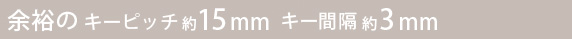| また、キーとキーとの間隔も「約 3mm」と余裕がある設計なので、間違えて隣のキーを押してしまうことも少なくなるようになっています。 |