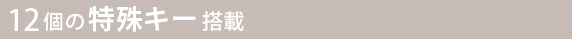 | 「iPad mini 用 ワイヤレス キーボード BooKey Pro」は「Fn (ファンクション)キー」とのコンビネーションで使える、12個の特殊キーを搭載しています。 |