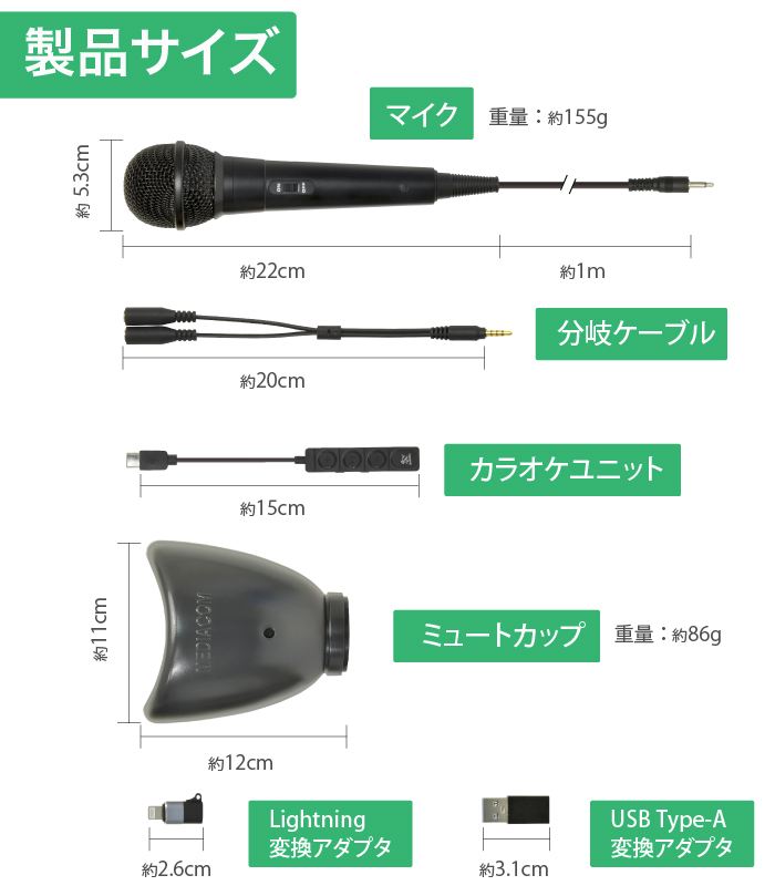 マイク:約長さ220×直径53mm×ケーブル長100mm