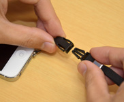 | もちろん「Neck Strap S for iPhone」は、iPhoneに取り付けたままでもApple純正の「Lightning - USB ケーブル」を挿すことが出来ますので、充電の度にストラップを外す必要はありません。 |